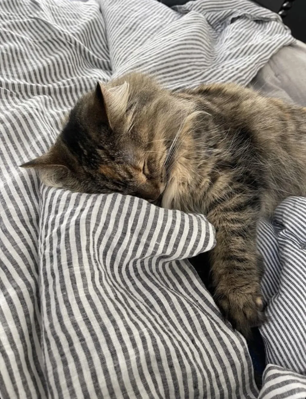 I ordered these striped linen sheets from Woven Kin and they are a game changer. I have been searching for that “not too hot not too cold” bedding forever, and I always avoided linen thinking it might be too scratchy. Wrong. From our first night trying these, my husband and I have slept longer and deeper than we have in ages. It’s almost hard to explain… other than they breathe so well and are so cozy I don’t feel a need to turn so often. As you can see, our kitty approves, as well! It’s also nice to receive personalized notes about how to care for them from Candice. Thanks for sourcing and making these available, Woven Kin!