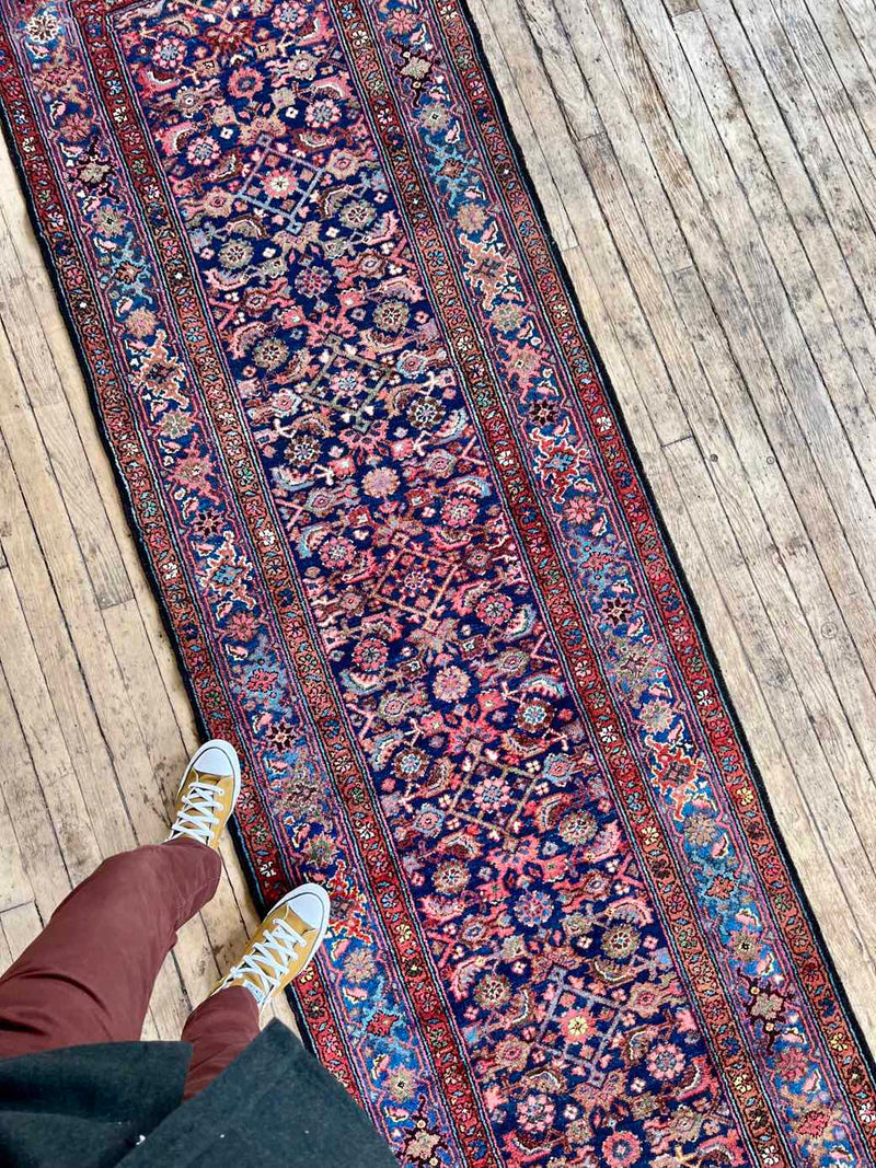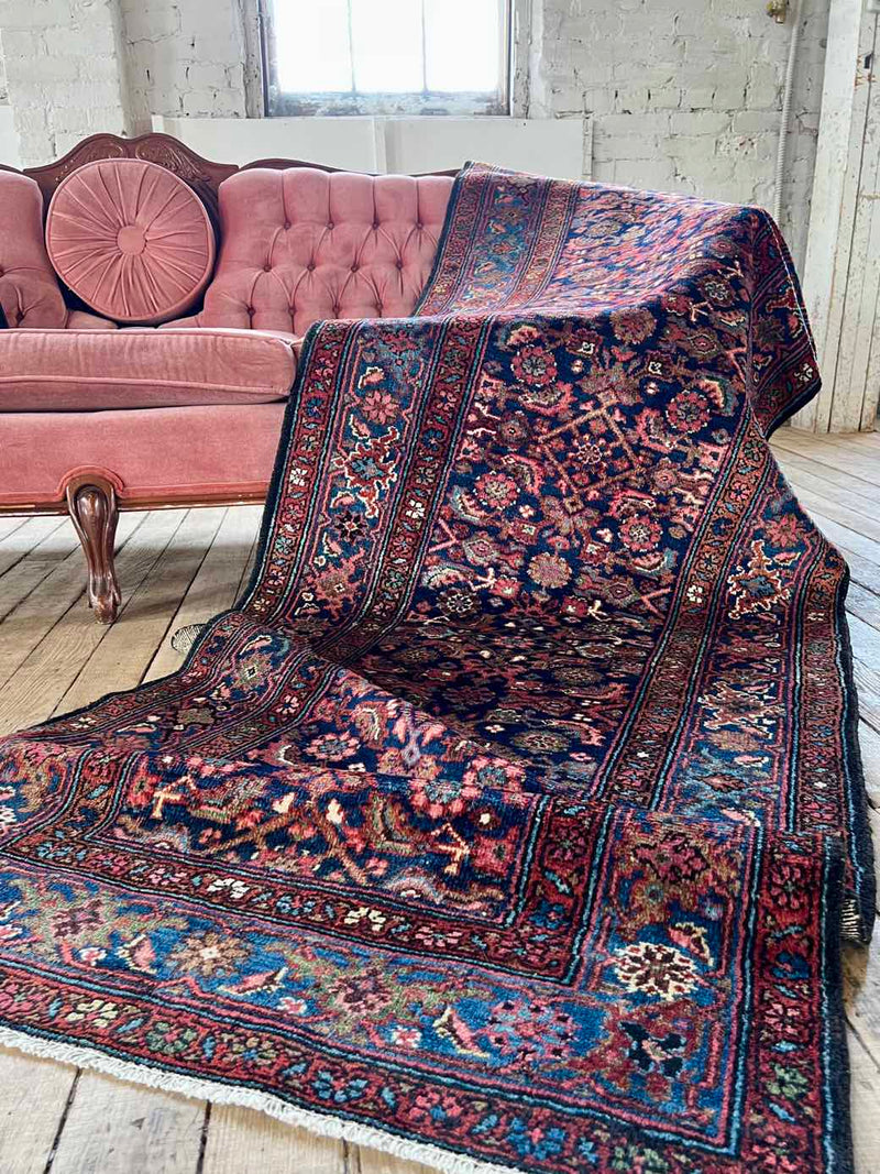 Due to the vintage and handmade nature of our rugs, there may be imperfections, repairs, and signs of wear that lend character and are not considered defects. Our rugs are woven by hand and may not be a perfect rectangle (slight variations in width and length are normal). Measurements listed are the widest and longest points. Colors may vary based on your screen or home lighting. I try to photograph each rug as accurately as possible in daylight, but please be aware that they will look different in low light. I’m always happy to send photos in lower lighting upon request or answer any questions you may have.